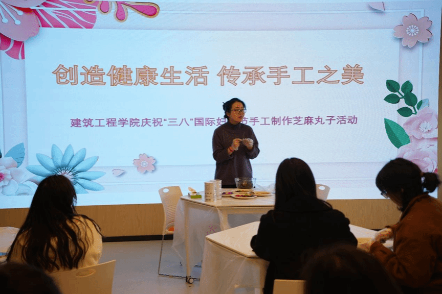 将劳动教育融入庆祝“三八”国际妇女节,组织师生开展了“创造健康生活,传承手工之美”手工制作芝麻丸子活动。此次活动由学院书记杨如丽主持,学院女教师和女学生代表参加。