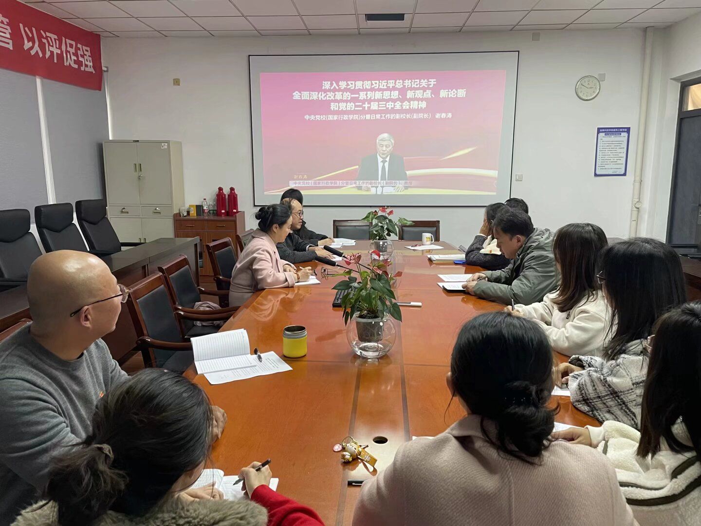 各支部党员集中学习了习近平总书记近期重要讲话和指示批示精神,深入学习了习近平总书记近期发表的重要文章。重点学习了《习近平主持二十届中共中央政治局第十七次集体学习并发表重要讲话》、《习近平对社会工作作出重要指示强调 坚定不移走中国特色社会主义社会治理之路 推动新时代社会工作高质量发展》、《习近平:以人口高质量发展支撑中国式现代化》等内容。同时,通过观看中央党校(国家行政学院)副校长(副院长)谢春涛的视频,深入学习贯彻习近平总书记关于全面深化改革的一系列新思想、新观点、新论断和党的二十届三中全会精神,并结合工作实际进行交流研讨。之后,各党支部结合工作实际开展针对性活动。
