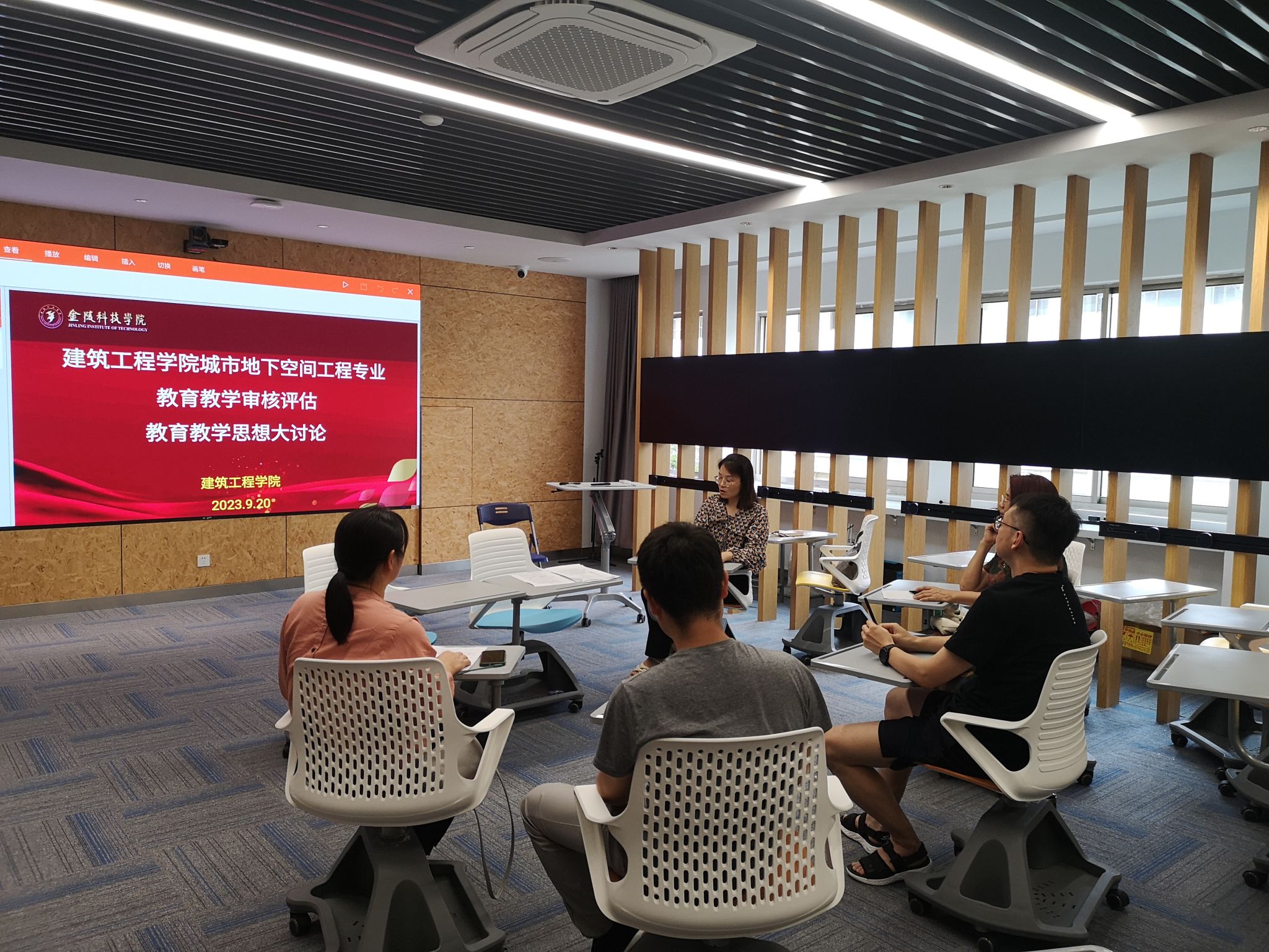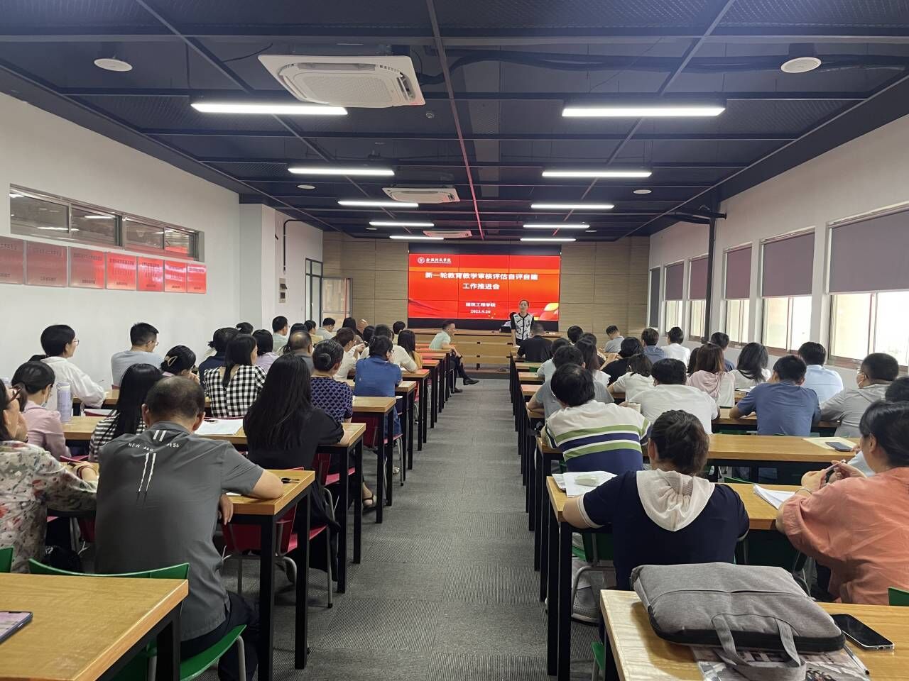 2023年9月20日下午,学院在工科楼B513会议室召开新一轮本科教育教学审核评估自评自建工作推进会,会议由刘志峰院长主持,全体教师参加会议。沈瑾书记对教育教学审核评估工作进行了总体要求。刘志峰院长就学院各专业如何落实立德树人、强化专业特色、创新人才培养模式和提升教师教学水平等方面进行了具体布置。黄冬辉副院长就教育教学审核评估的理念、指标和内涵建设同大家一起再次深入交流,详细介绍了学校教育教学思想大讨论活动工作方案,就香蕉视频