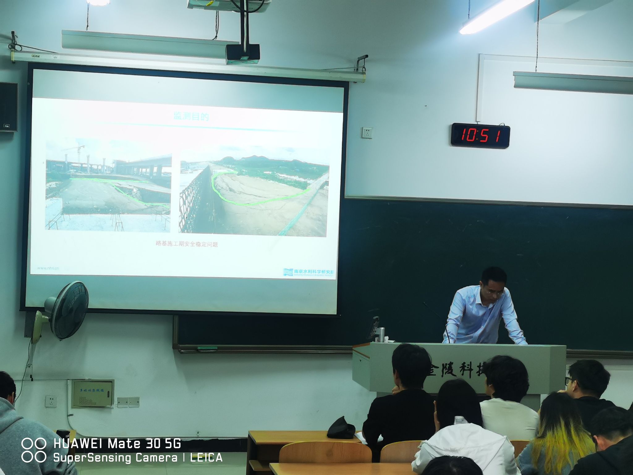 ,为21级城市地下空间工程系的学生带来了一场别开生面的专业讲座。吴总主要从事岩土工程、河湖水环境综合治理等方向工程设计与研究。该讲座主要针对《地下工程监测与评价》这门课的专业难点和重点。讲座内容为:高速公路工程软基处理施工监测方案及关键技术。该内容主要针对地下工程监测余评价这门课程。吴总以江门市银洲湖高速公路工程为例向学生介绍了软基处理施工监测目的、内容、方法、布置、稳定条件、预警控制及施工要求。最后吴总就工程监测、河湖水环境综合治理的前沿技术和实践问题与学生们展开了互动交流,拓展了学生的知识面。学生就未来就业前景、考研方向等向吴总进行请教,现场气氛异常活跃。通过本次讲座提高了学生对本专业的学习热情和信心,也为学生未来的专业发展和就业情况提供了宝贵的指导意见。