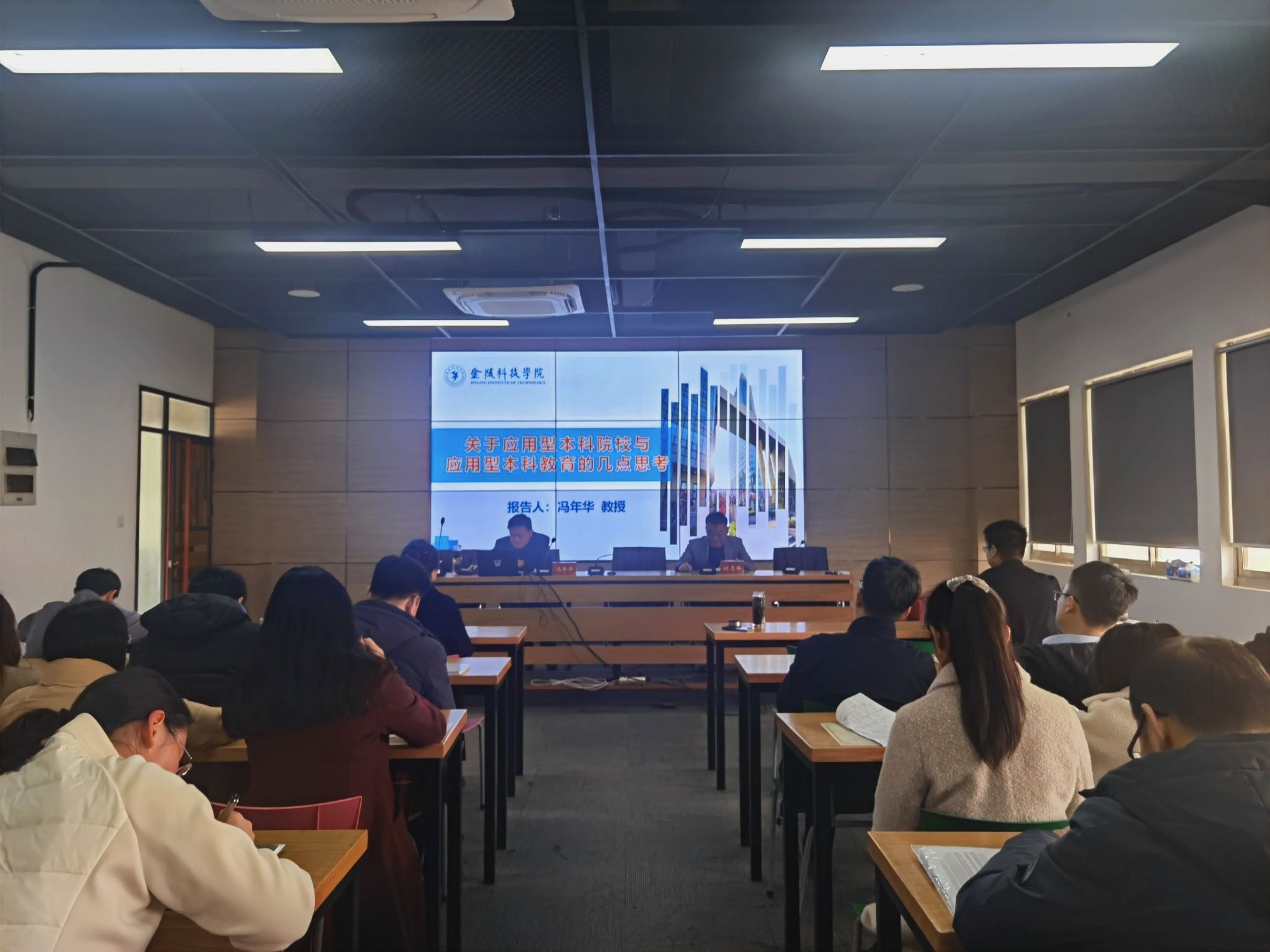 冯年华教授报告主题为“关于应用型本科院校与应用型本科教育的几点思考”。报告紧紧围绕“应用型本科院校与应用型本科教育”主题,剖析了关于应用型本科院校的定义和基本特征、应用型本科高校的现状和发展趋势,应用型人才的特点和培养规格,对应用型本科院校学科与专业的关系、教学与科研的关系、职业教育与应用型本科教育的关系、应用型本科教育理论教学与实践教学的关系等方面进行了阐释,对新一轮本科教育教学审核评估的指标进行了解读,深刻启发教师们的积极思考和认真研讨。通过辅导报告,教师们将学到的理论转化为应对挑战、梳理短板、谋划对策、破解难题、推动工作的实践动力,将学习成果运用到迎评促建各项工作中,助力高水平通过审核评估。