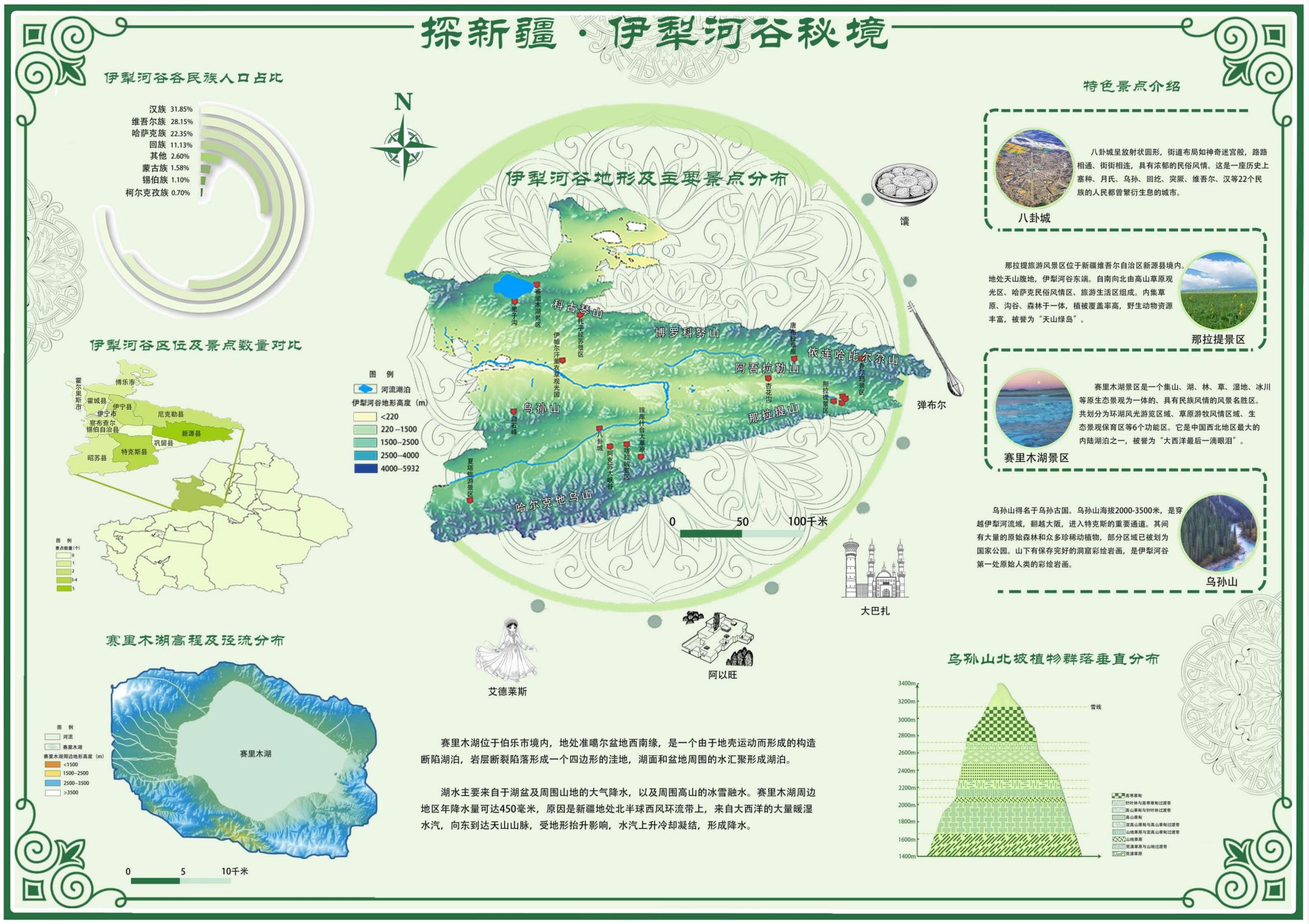 苑惠丽、杨亚楠两位老师担任指导教师,城乡规划专业21级本科生李孟如、罗少玉、龚若琪三位同学提交的“探新疆·伊犁河谷秘境”设计成果获得三等奖。