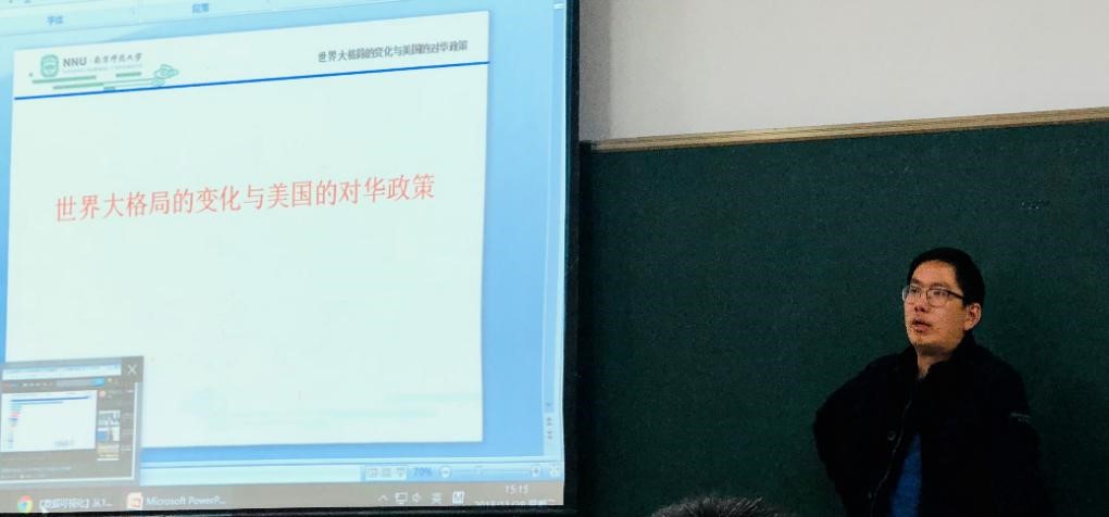 在5202教室承办了以“世界大格局的变化与美国的对华政策”为主题的形势与政策讲座,本次讲座由马克思主义学院王锐老师主讲。