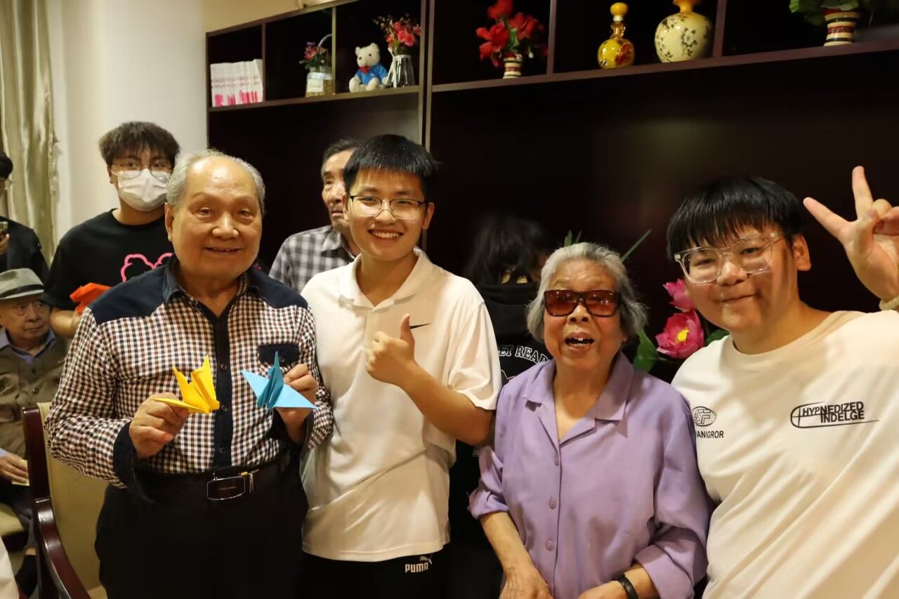 志愿服务活动安排了表演环节、游戏环节和手工环节。在表演环节中,通过大合唱、双人合唱、独唱等形式歌唱了《相亲相爱》、《歌唱祖国》、《海阔天空》等歌曲,展示了当代青年的青春活力和律动姿态,勾起了老人们年轻时的回忆, 将现场气氛烘托至高潮。在游戏环节中,志愿者们和老人们一起进行“左右交叉”的游戏,当主持人说“左手”,大家就要举起右手;当主持人说“右耳朵”,大家就要指“左耳朵”。在手工环节中,志愿者们与老人们一起折纸花,窗花、花朵、千纸鹤、小船、纸飞机、纸兔、蝴蝶等折纸作品在志愿者们的带领下由老人们折出,留作本次活动的纪念,整个环节中大厅都充满着欢笑声,气氛活跃。