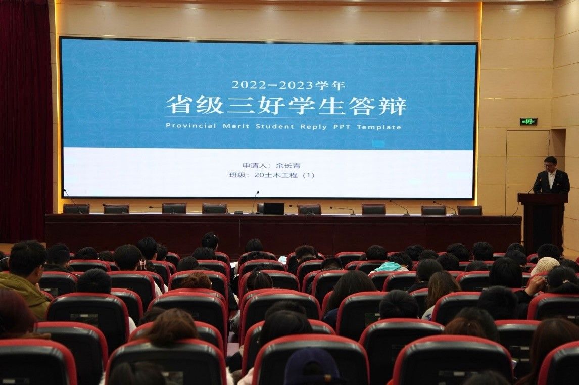 举办强国有我、“建工”立业——2023年省级荣誉答辩会。院党委书记沈瑾、全体辅导员担任评委。会议由学工办副主任鲍飞豹主持。