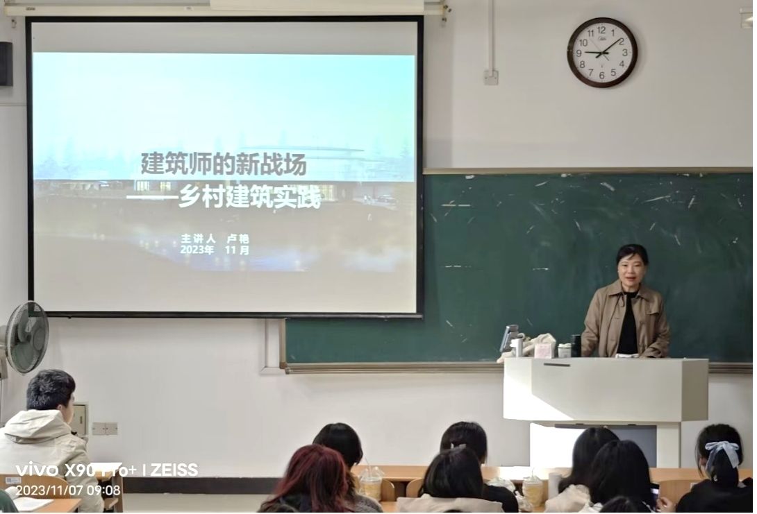 2023年11月7日星期二上午,建筑学专业邀请华设设计集团股份有限公司副总建筑师、高级工程师、国家一级注册建筑师卢艳,在江宁校区3209教室进行2023级建筑学专业新生专业教育讲座。讲座由建筑系主任张启菊老师主持,2023建筑学班主任张睿、龚亚西老师参与讲座。