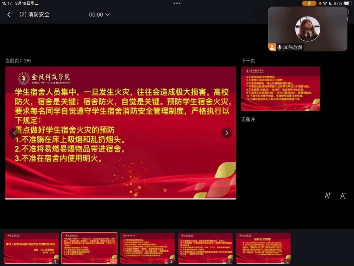 于3月下旬组织学院全体班级开展线下和线上消防安全主题班会。班会由各班安全员主持,全体学生参加。