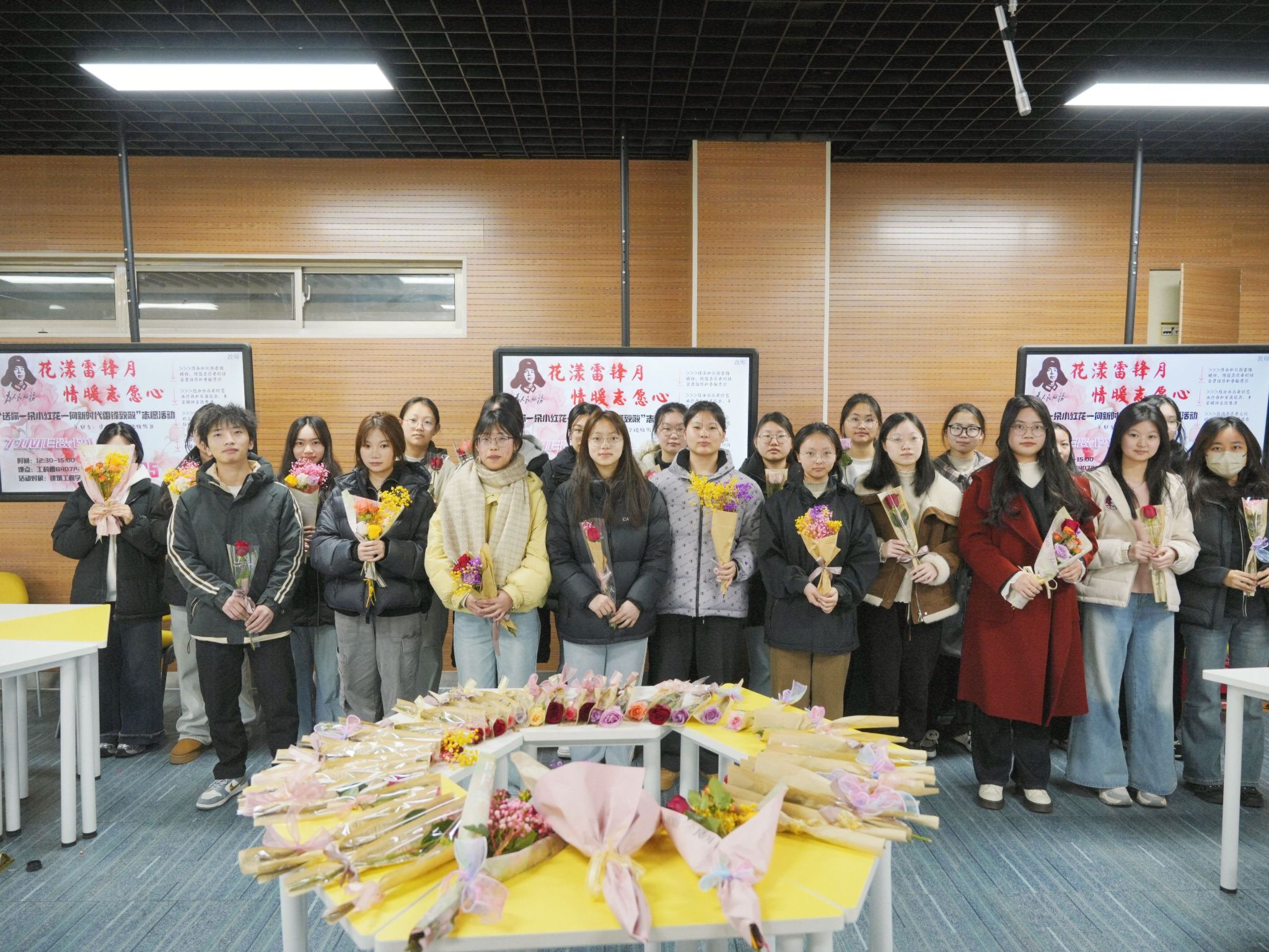 为弘扬和传承雷锋精神、深化志愿服务内涵,香蕉视频 于2025年3月5日在知行楼B412 举办了“送你一朵小红花—向新时代的雷锋致敬”主题插花活动。本次活动以艺术创作与志愿服务相结合的形式,吸引众多师生参与,在花香与温情中诠释新时代雷锋精神的传承。