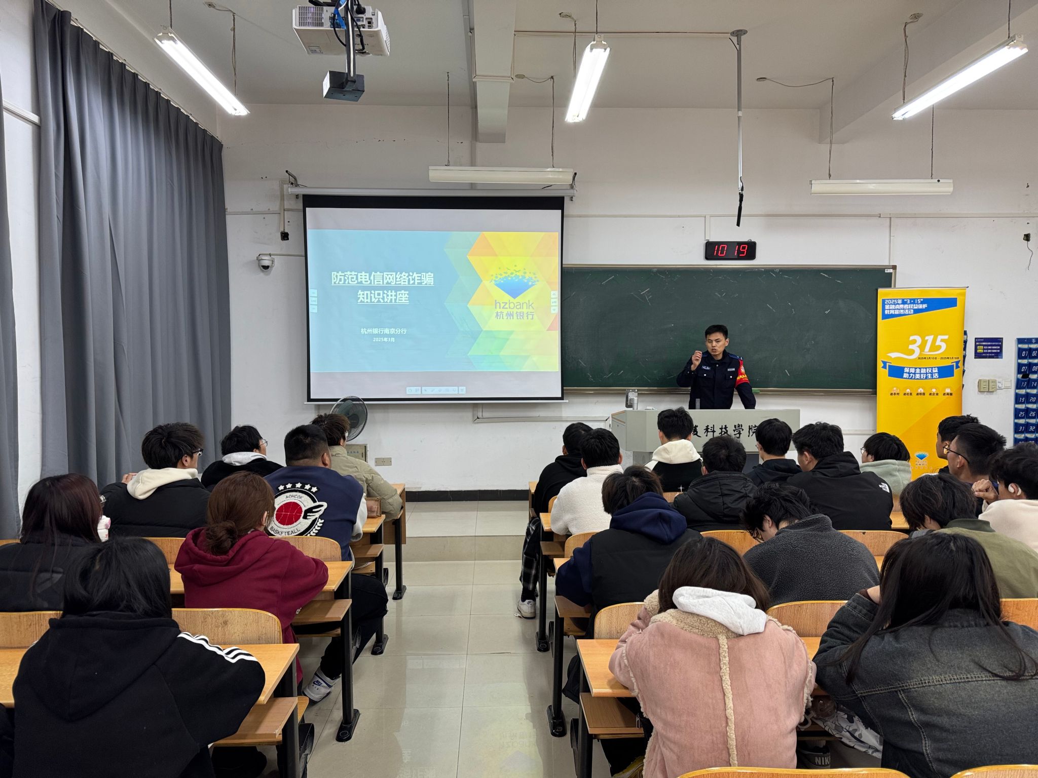 于2025年3月19日科技楼报告厅开展春季学期防范电信网络诈骗主题宣传教育启动式和宣讲会,本次活动由学院负责反电信诈骗工作的辅导员濮香玉老师主持,各年级学生代表、安全员参加。