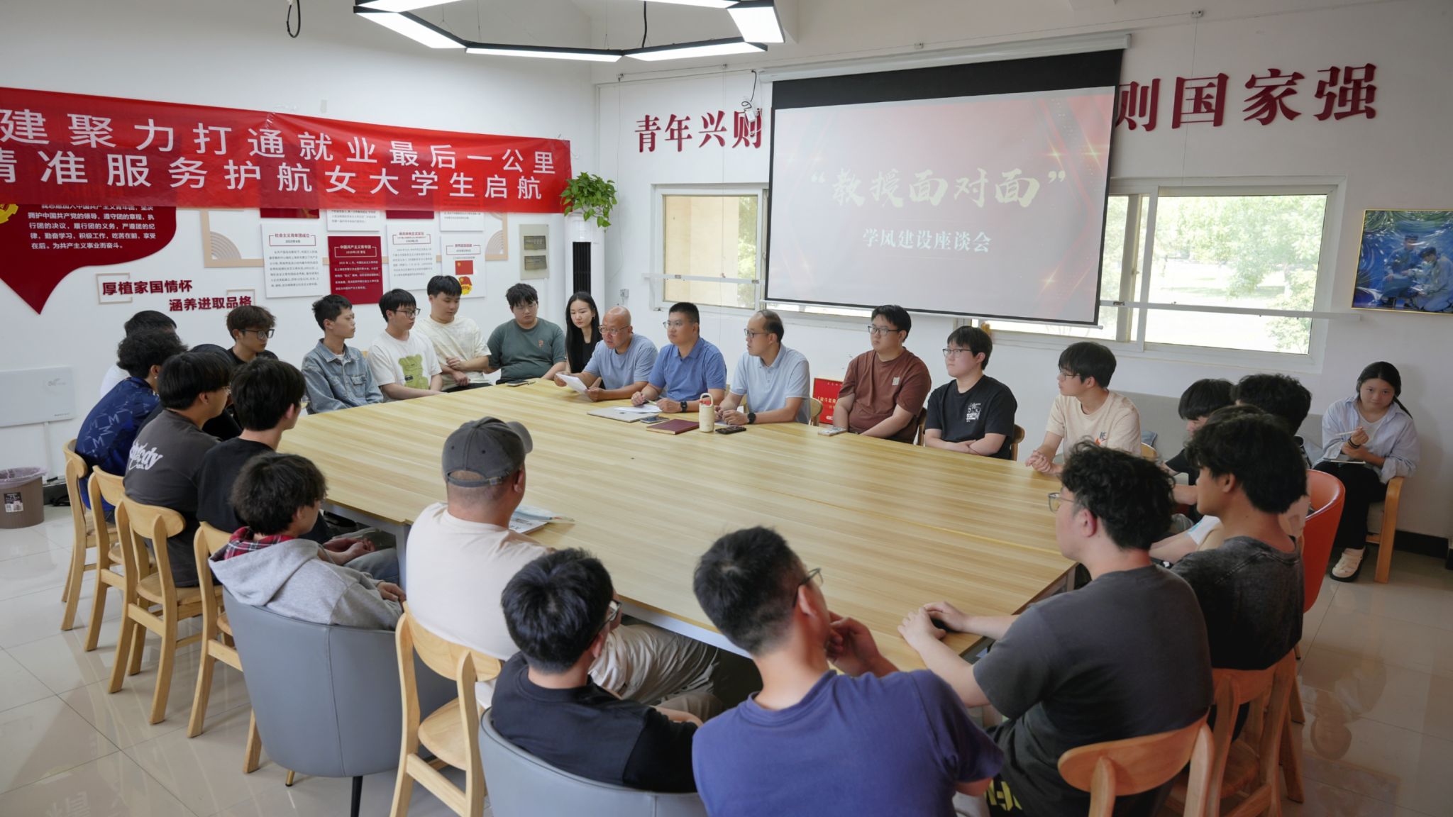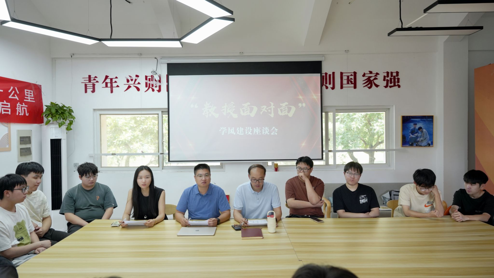 为进一步加强学风建设,促进人才培养水平的不断提高,深入了解学生学习情况,香蕉视频 于5月29日在南区08栋“一站式”学生社区举办“教授面对面”学风建设座谈会。学院党委副书记郑庆秋、副院长黄冬辉、教务臧靖、辅导员濮香玉以及22级学生参与。