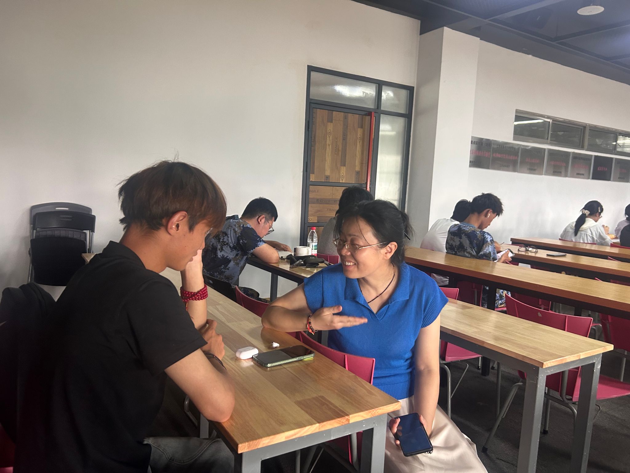 党委副书记郑庆秋与辅导员姜艳、鲁瑶重点走访了北区01栋新生宿舍,逐一察看房间通风、设施配备及卫生状况。在走访过程中,郑庆秋副书记细致询问:“食堂饭菜是否习惯?生活用品是否齐全?”当发现部分宿舍存在“空调漏水”等问题时,现场指导学生完成报修。