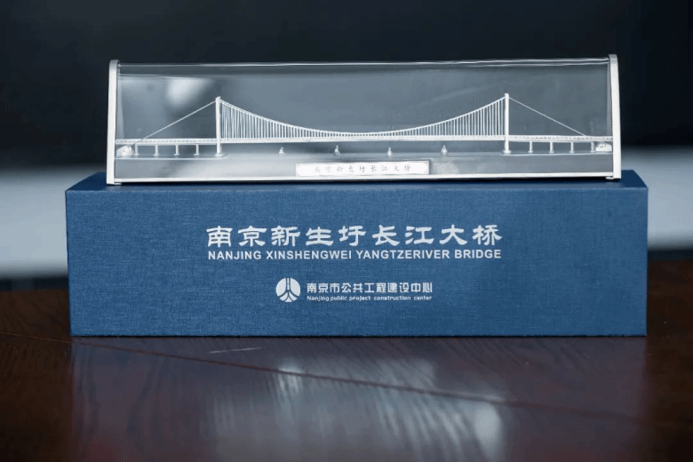 参观结束时,公建中心赠送给团队成员们新生圩长江大桥的模型。