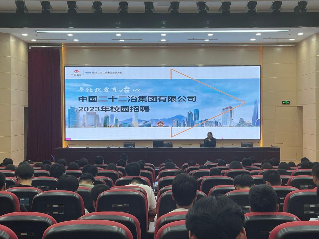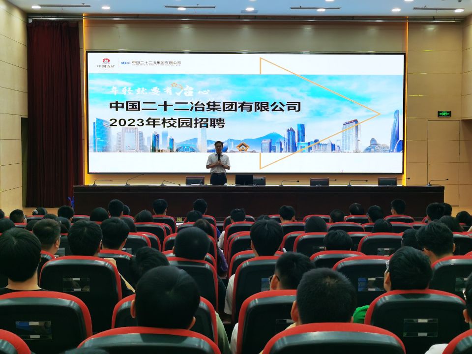 于9月27日晚在科技楼报告厅举办2023届毕业生面试指导讲座暨中国二十二冶集团有限公司江苏分公司招聘宣讲会,会议由中国二十二冶集团有限公司江苏公司党委组织部(人力资源部)部长张亮主讲,学工办副主任鲍飞豹主持。