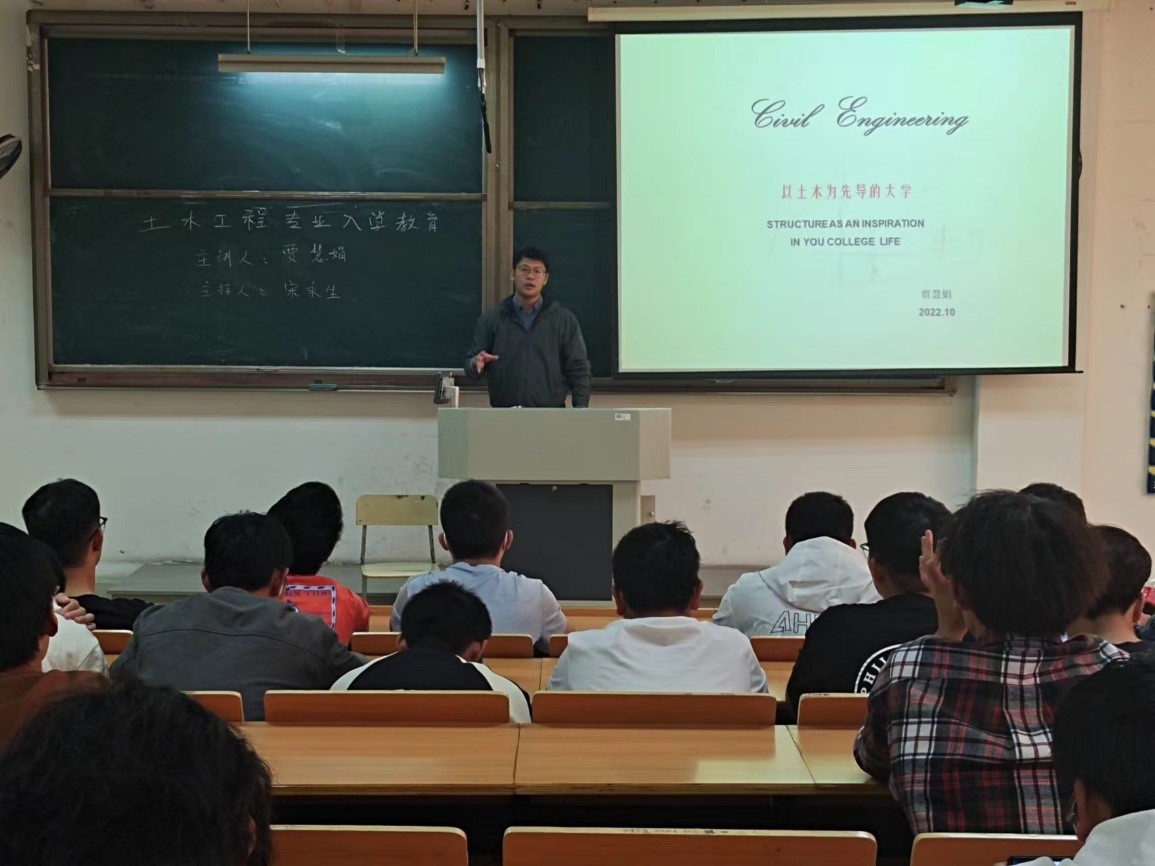 2022年10月16日,土木系在江宁校区2302教室举行土木工程专业2022级新生专业教育讲座。土木工程专业2022级全体学生、土木系宋永生老师、贾慧娟老师参加了讲座,讲座由宋永生主持。