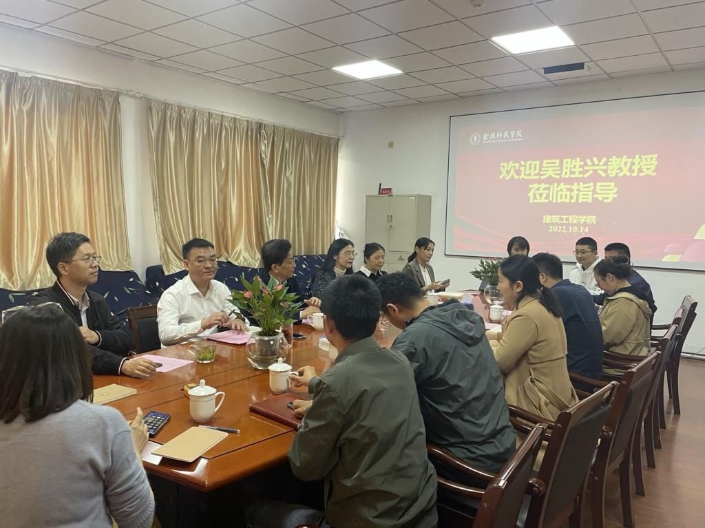 邀请民盟江苏省委专职副主委、一级巡视员、河海大学博士生导师吴胜兴教授莅临指导土木水利硕士专业学位点建设。校党委常委、纪委书记王延光出席会议,建工学院党政领导班子,硕士点方向负责人宣卫红、苏慧,硕士点研究生导师、骨干教师和学院青年博士教师代表参加会议,会议由学院院长刘志峰主持。