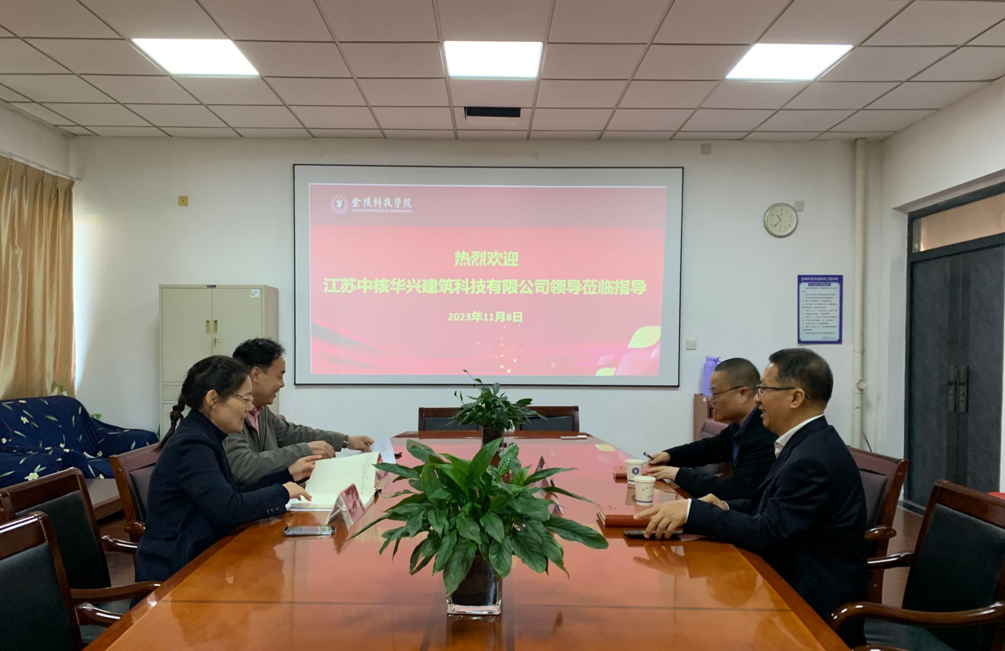 11月8日,江苏中核华兴建筑科技有限公司党委书记刘强、总经理助力彭建兵一行来校洽谈合作,香蕉视频 党委书记沈瑾、学工办副主任鲍飞豹参加洽谈会。