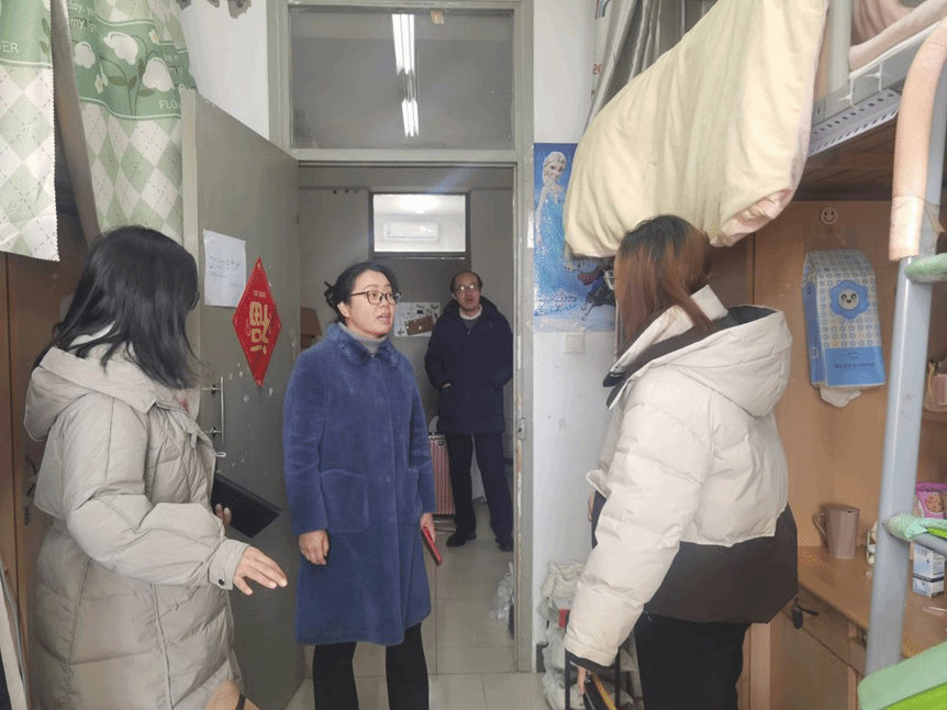 党委书记杨如丽和党委副书记郑庆秋与全体辅导员老师一同深入学院学生宿舍,对学生宿舍用电及安全情况进行了检查,尤其对可能使用的大功率违规电器等进行了仔细排查。辅导员们利用此次检查向学生们普及了宿舍安全知识,提醒他们注意用电安全、防火防盗等事项。