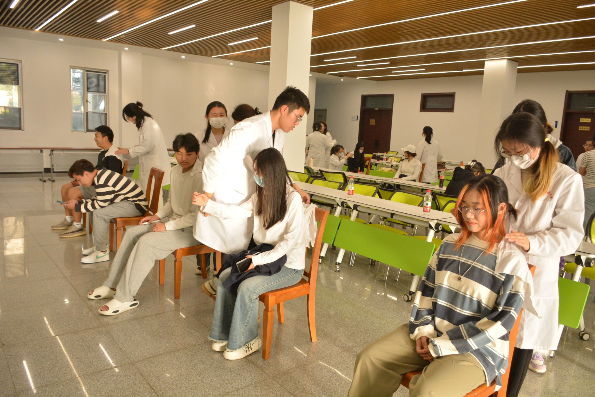 同学进行了专业的中医推拿,帮助同学们疏通经络,放松肌肉,减轻身体压力。