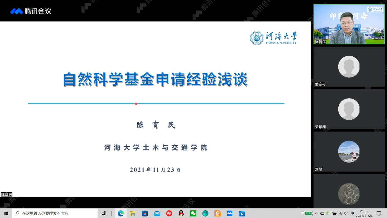 教师申报国家自然科学基金项目的成功率,学院邀请河海大学陈育民教授开展国家自然科学基金申请培训与经验交流报告。