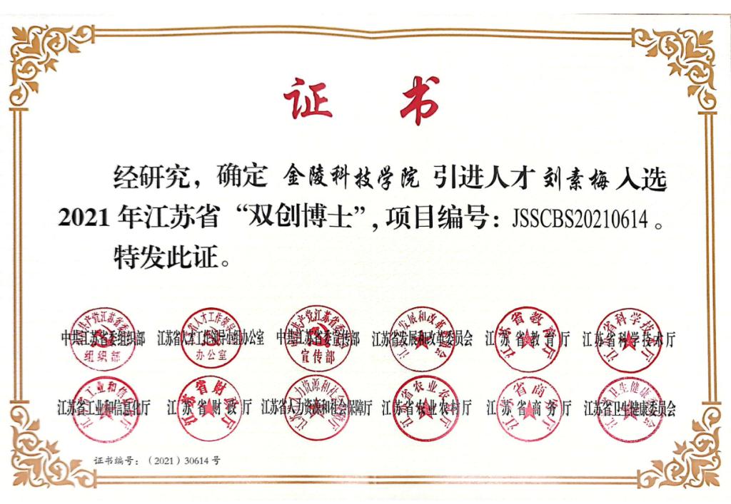 江苏省“双创计划”是江苏省人才工作的品牌工程,主要围绕江苏省发展战略目标,吸引高层次人才来苏创新创业。2021年江苏省“双创计划”包括双创人才、双创团队和双创博士三个类别,两年内省级财政给予每个“双创博士”总共15万元的创新创业资金资助。