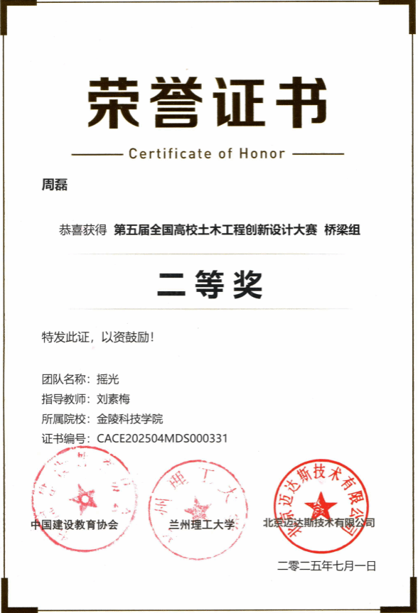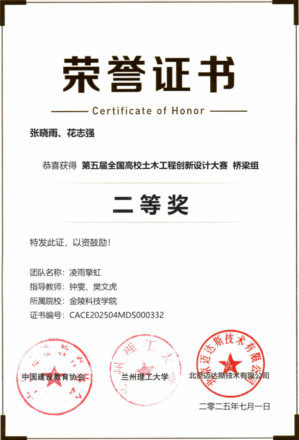 刘素梅、钟雯、姜彦彬、樊文虎四位老师指导的学生在本次竞赛中取得佳绩,获桥梁组二等奖2项、三等奖2项,岩土组三等奖3项,并获最佳组织奖。