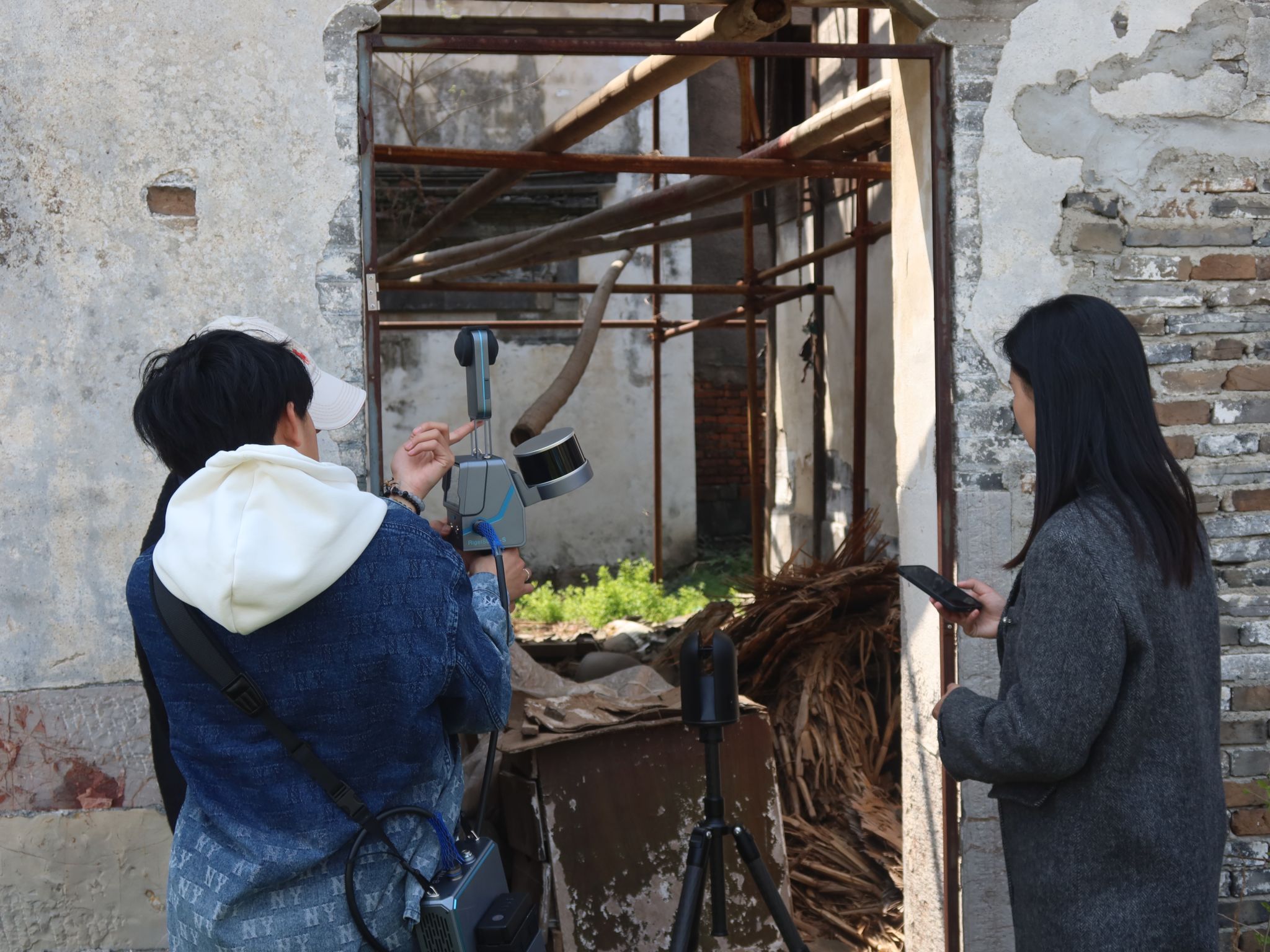 师生团队立即投入现场工作。10余名师生用激光测绘仪当“听诊器”,用无人机当“放大镜”,为青砖黛瓦、岁月残垣一次次地做“体检”。带队教师李冰希望学生通过实地测绘,能直观理解传统木构技艺,为后续“修旧如旧”修复方案积累数据。