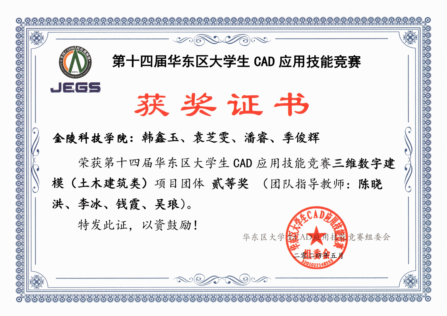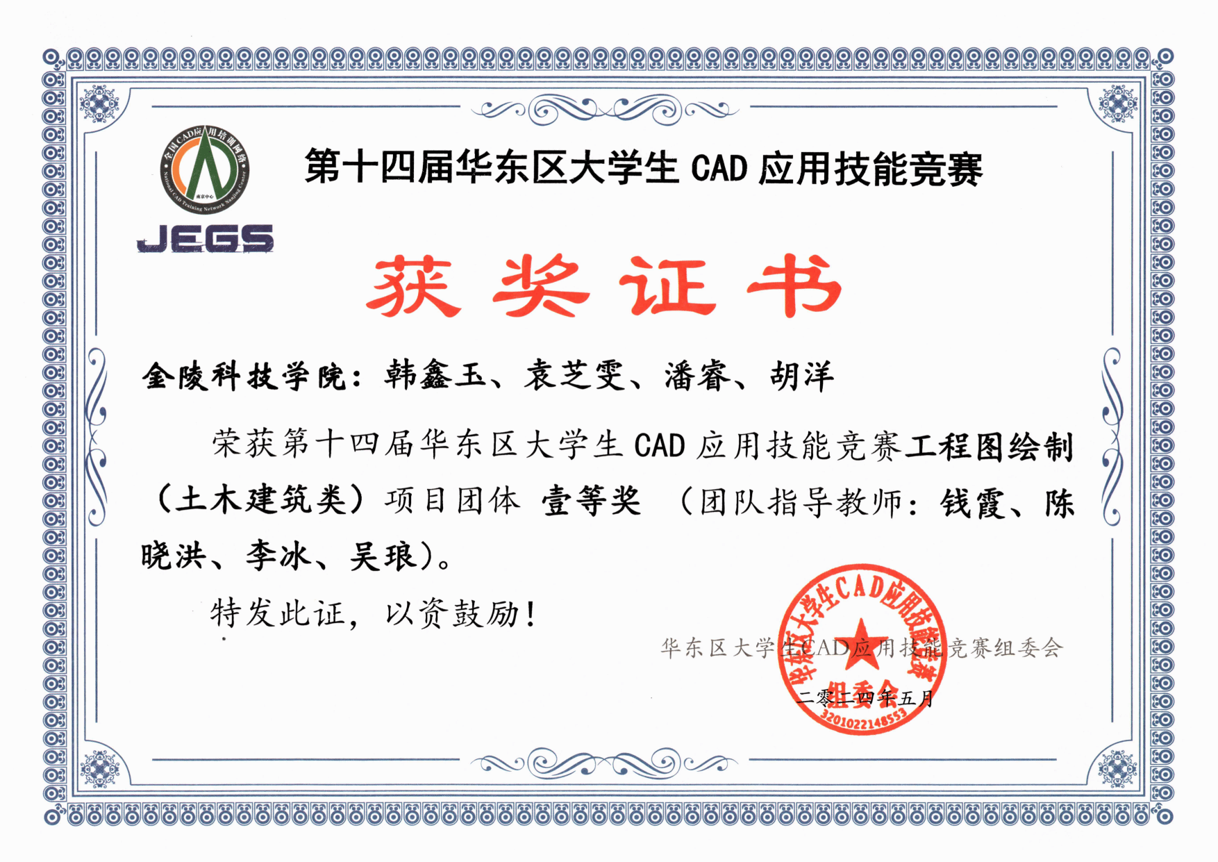 第十四届华东区大学生CAD应用技能竞赛CAD获奖汇总表