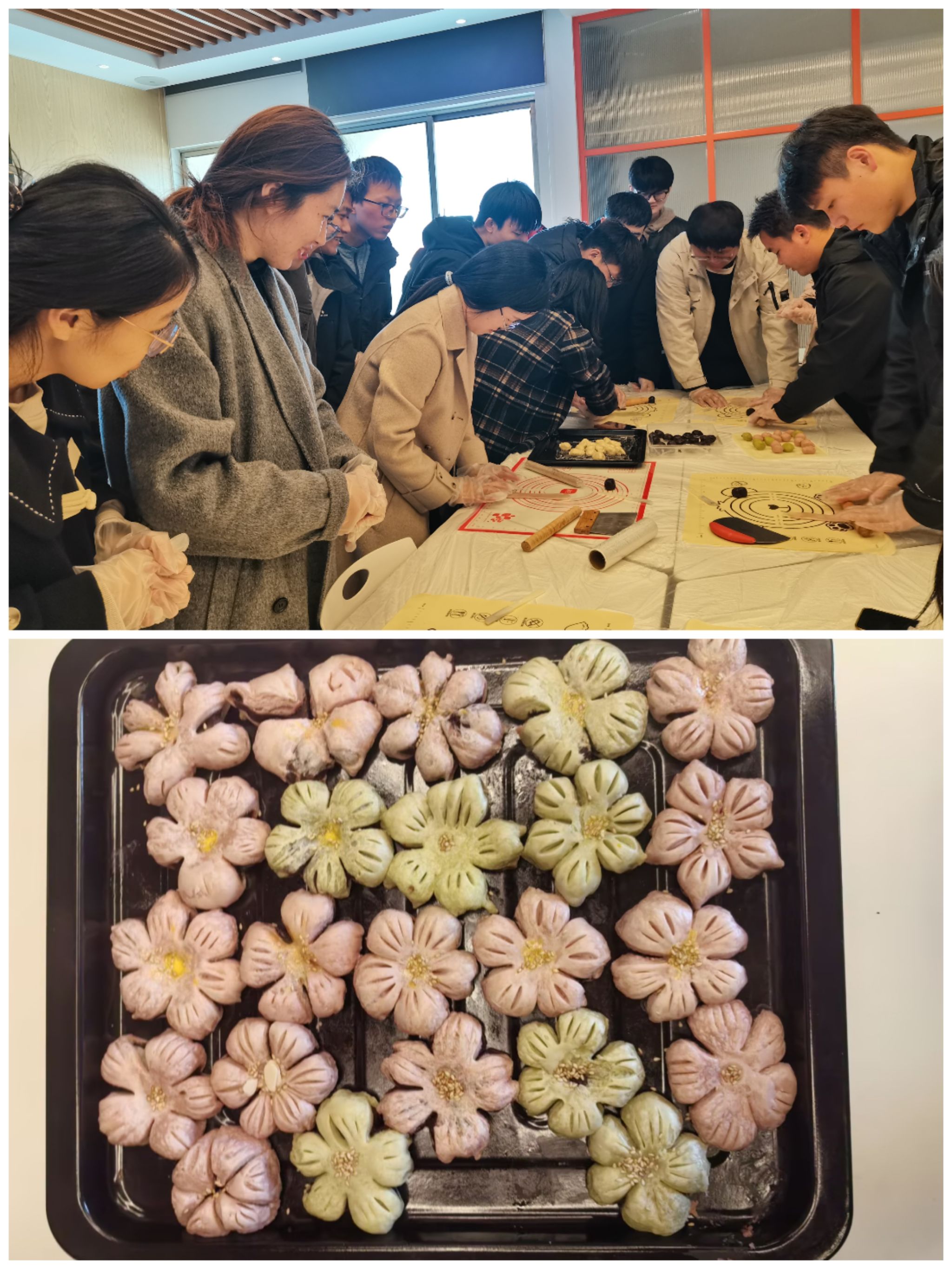 桃花酥不仅应景春日,更寓意“桃李芬芳”,寄托着老师对学生成才的期许,也象征着师生情谊如花绽放。“第一次知道桃花酥的制作步骤这么讲究!既要控制力度,又要兼顾层次感,像极了科研中的细致推敲。”研二的李同学感慨道。