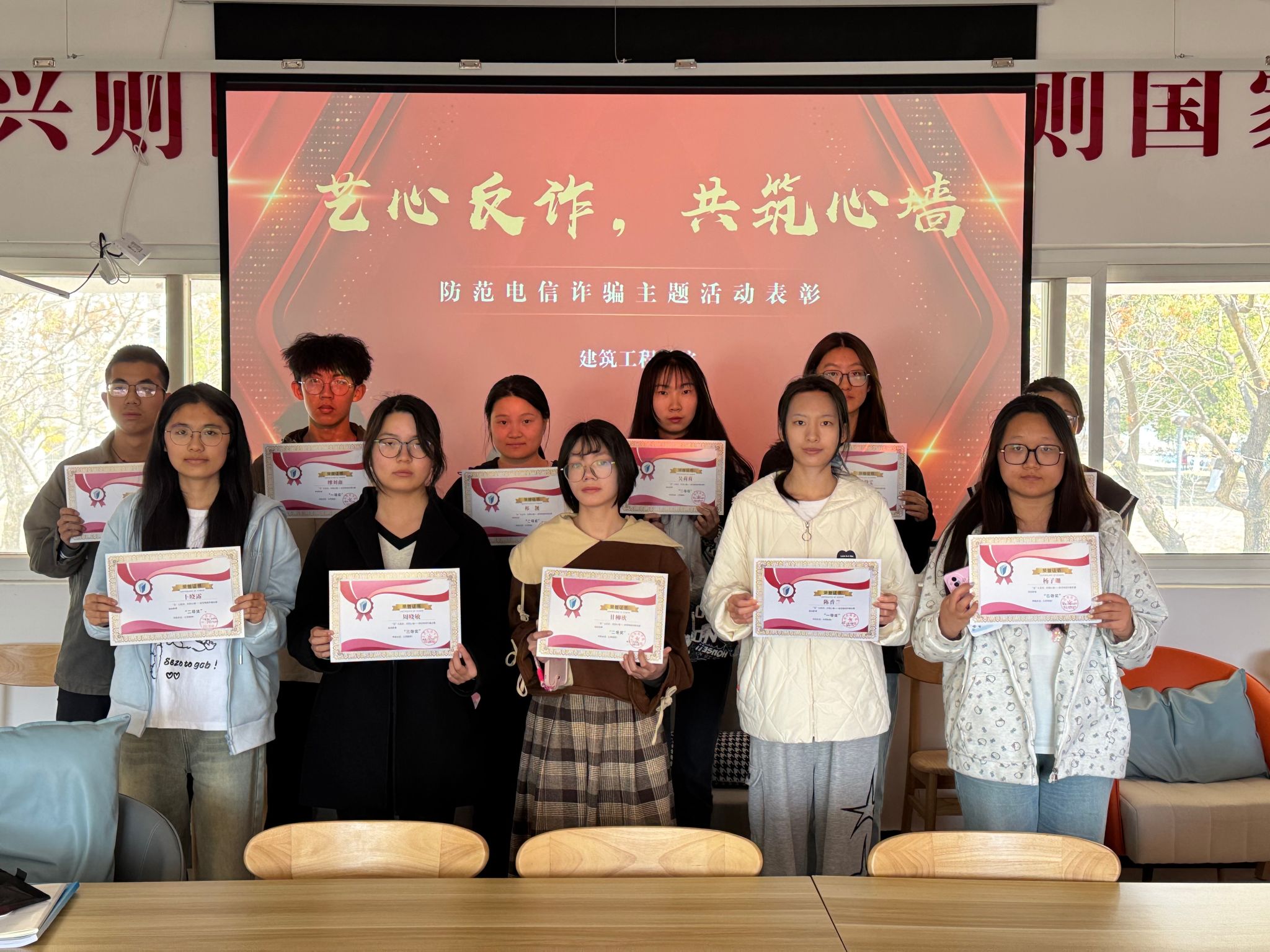 于2025年4月3日在南区08栋一站式学生社区举办“艺心反诈,共筑心墙”为主题的反诈创意作品征集评比活动。
