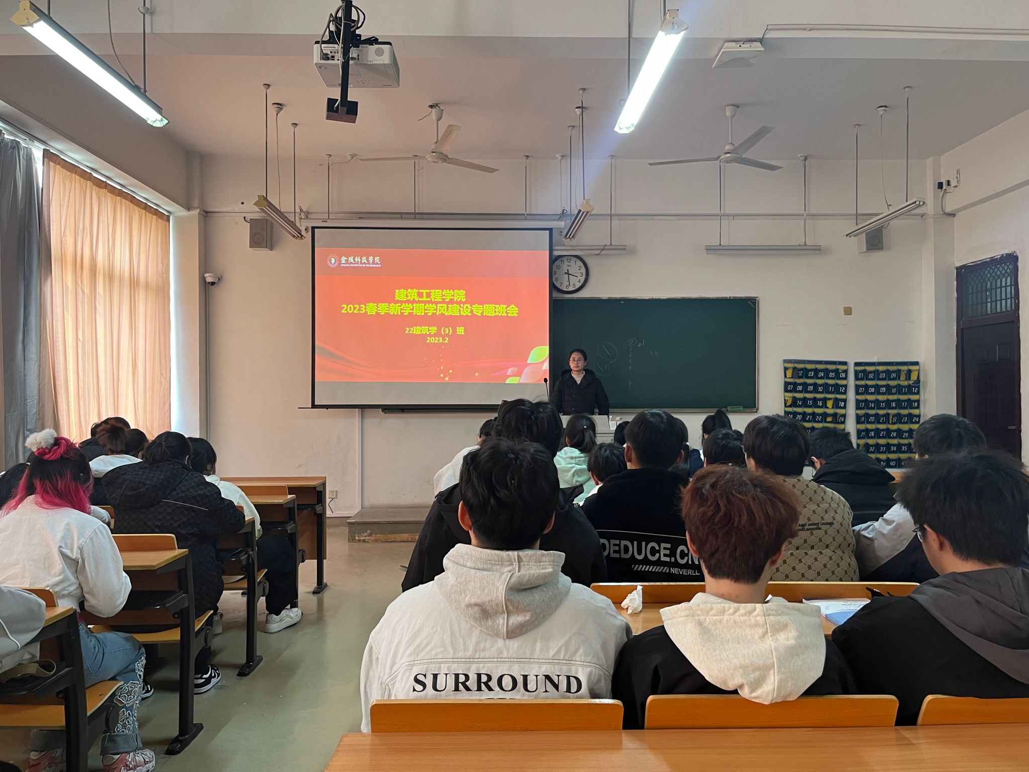 各班主任带领学生客观、全面分析本班上学期学习情况,认真分析上学期学风建设中存在的问题,研究具体改进措施,引导学生从之前的网上学习状态调整到紧张、活泼的校园生活状态,努力提升学生专业素质和理论水平,端正价值追求,让建工学子的葳蕤青春在奋力谱写特色鲜明的高水平新兴应用型大学建设新篇章和全面建设社会主义现代化国家的火热实践中绽放。