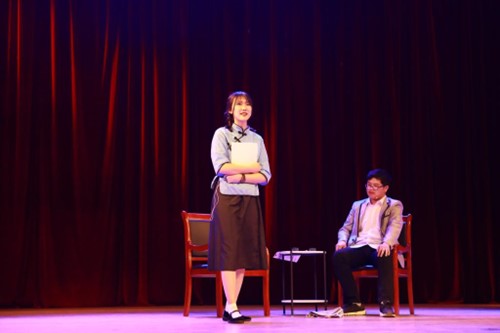 17级、18级的参演同学们在反复练习中创新情景、修改剧本、锤炼演技,用真挚的情感和稳健的台风为现场观众呈现了一场精彩绝伦的视觉盛宴——《五四风雷》,该作品运用话剧对白与歌剧混搭的形式,讲述了以北大学生夏碧寒为代表的一群热血青年学子,面对国家危难,一面与封建军阀进行最为决绝的斗争,一面把先进的思想注入过渡中的中国社会。他们鲜活地诠释了新一代学子的精神内涵;他们把爱国之情展现得淋漓尽致;他们提倡婚姻自由、不畏强权、据理力争、保我中华。这种青春、爱国、民主、进步的精神激励着一代又一代中国青年。