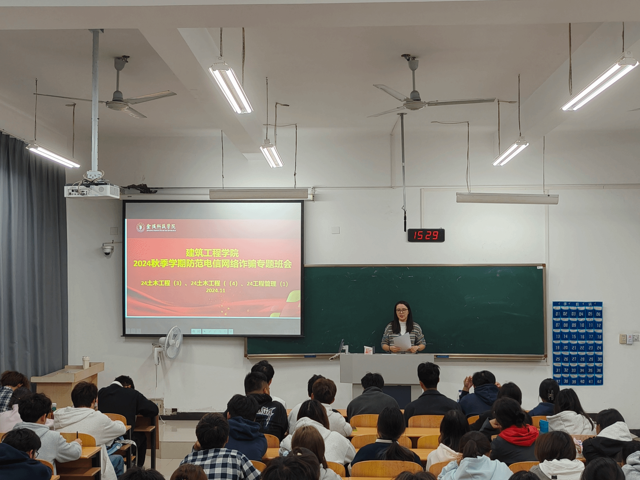 普通全日制本科生学业预警及帮扶管理办法(试行)》,学院教学与学工相联动,辅导员班主任与任课教师相协调与家长相沟通,学生干部参与,依据预警等级、结合学生实际情况制定帮扶计划,助力学生健康成长。班会上,各班级还进行“双十一”防范电信网络诈骗教育。