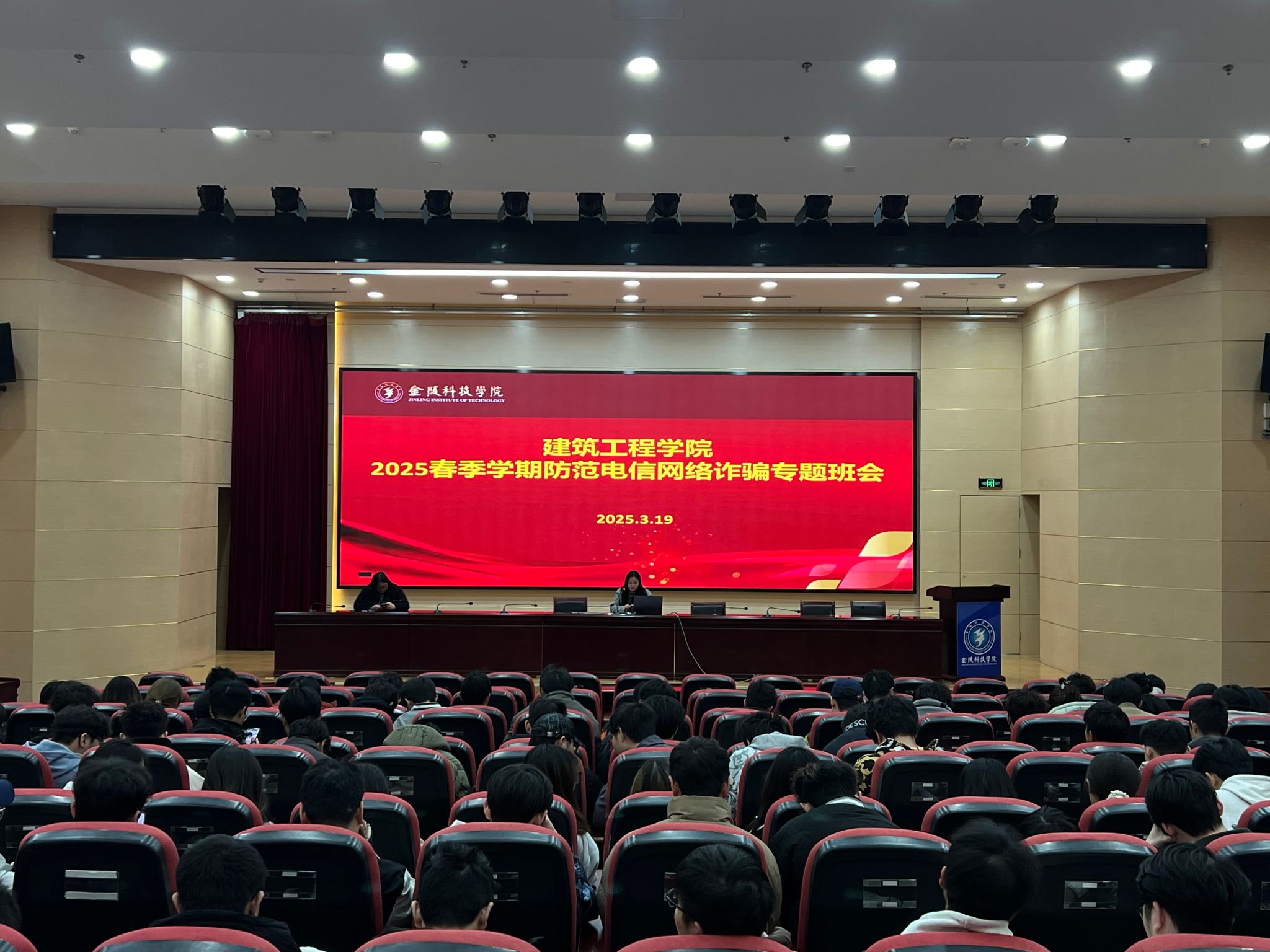 于2025年3月19日科技楼报告厅开展春季学期防范电信网络诈骗主题宣传教育启动式和宣讲会,本次活动由学院负责反电信诈骗工作的辅导员濮香玉老师主持,各年级学生代表、安全员参加。