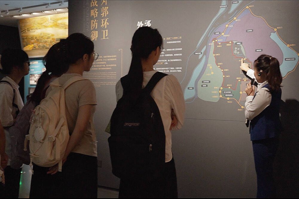 “寻脉城墙,匠心铸魂”暑期社会实践团的团队成员们在队长李非遥的带领下,赴南京城墙博物馆开展暑期“三下乡”社会实践活动,成员们以南京城墙为调研对象,触摸一砖一石的千年匠造,探寻聚土成垣的筑城文明,并结合专业特色,手绘了13座城门拼成南京城墙地图,用实际行动在赓续中华优秀传统文化中增强历史自信、文化自信。