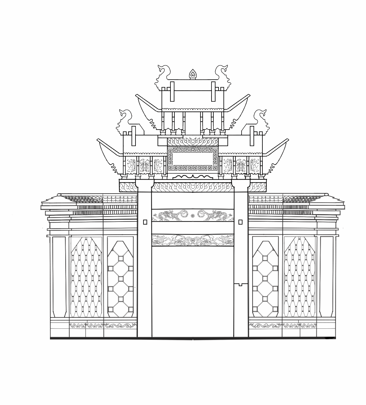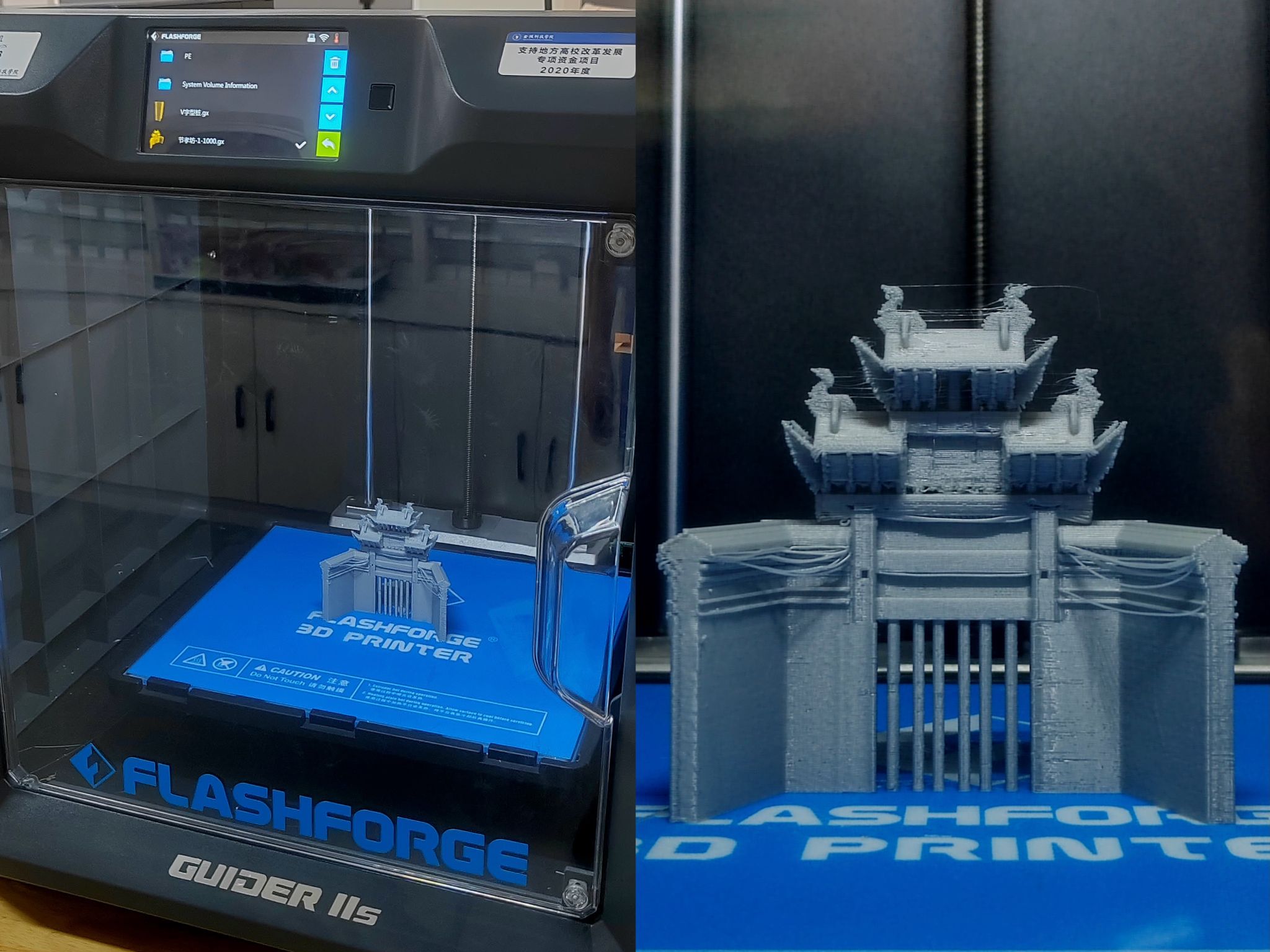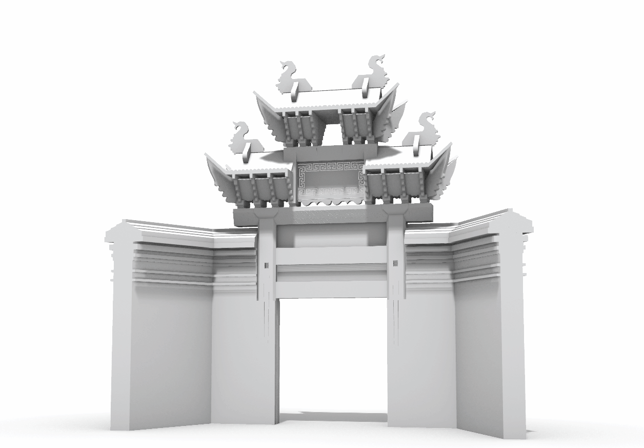 尽管孙家祠堂的大部分建筑只剩断垣残壁,但在东西两侧仍存有两座保存较为完好的石刻建筑——节孝坊。西侧的一座为明代节孝坊,上刻“旌表赠朝议大夫孙大中妻恭人张氏节孝”,对联:“教子成名无违夫子,事姑尽孝问我诸姑”。东侧的一座是御赐的,较西侧要大很多,做工也更加精美。团队猜想也是因为这个原因,其上砖雕、圣旨碑都已丢失。根据所得资料的描述以及对《营造法式》的学习,团队对这座清乾隆年间建造给儒生孙振乾之妻王氏的节孝坊绘制了立面复原图、花坊细节,并对其进行了建模和3D打印,希望能为其留下数字化痕迹。