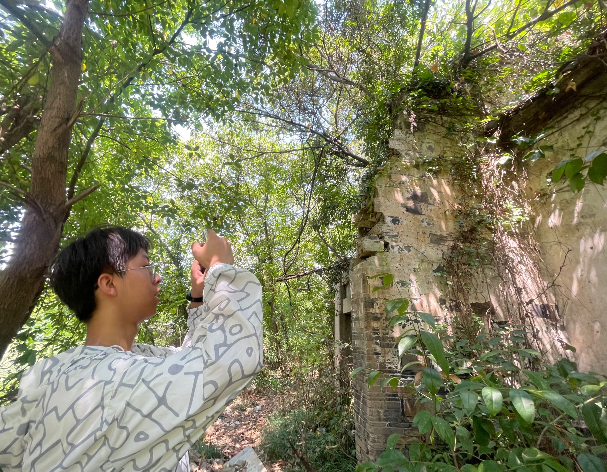 为了保护孙家祠堂及其中有价值的建筑装饰、祠堂格局,测绘分队开始对孙家祠堂进行了实地调研和测绘。但现场的情况并不乐观,肆意生长的植物,坍塌的护墙,被淤泥阻挡的道路,丢失的砖雕……通过无人机起飞后拍摄到的鸟瞰视角,实践分队的成员们观察到植物已经长满祠堂的各个角落,这意味着使用激光扫描技术为祠堂留下模型数据的想法行不通了。团队成员积极查阅资料,与指导老师充分沟通,从建筑学专业角度出发,最终找到了合适的解决方案,即通过考察南京其他地区的明清祠堂,查阅文献资料,实现对孙家祠堂平面的复原和更多有价值之处的探索。