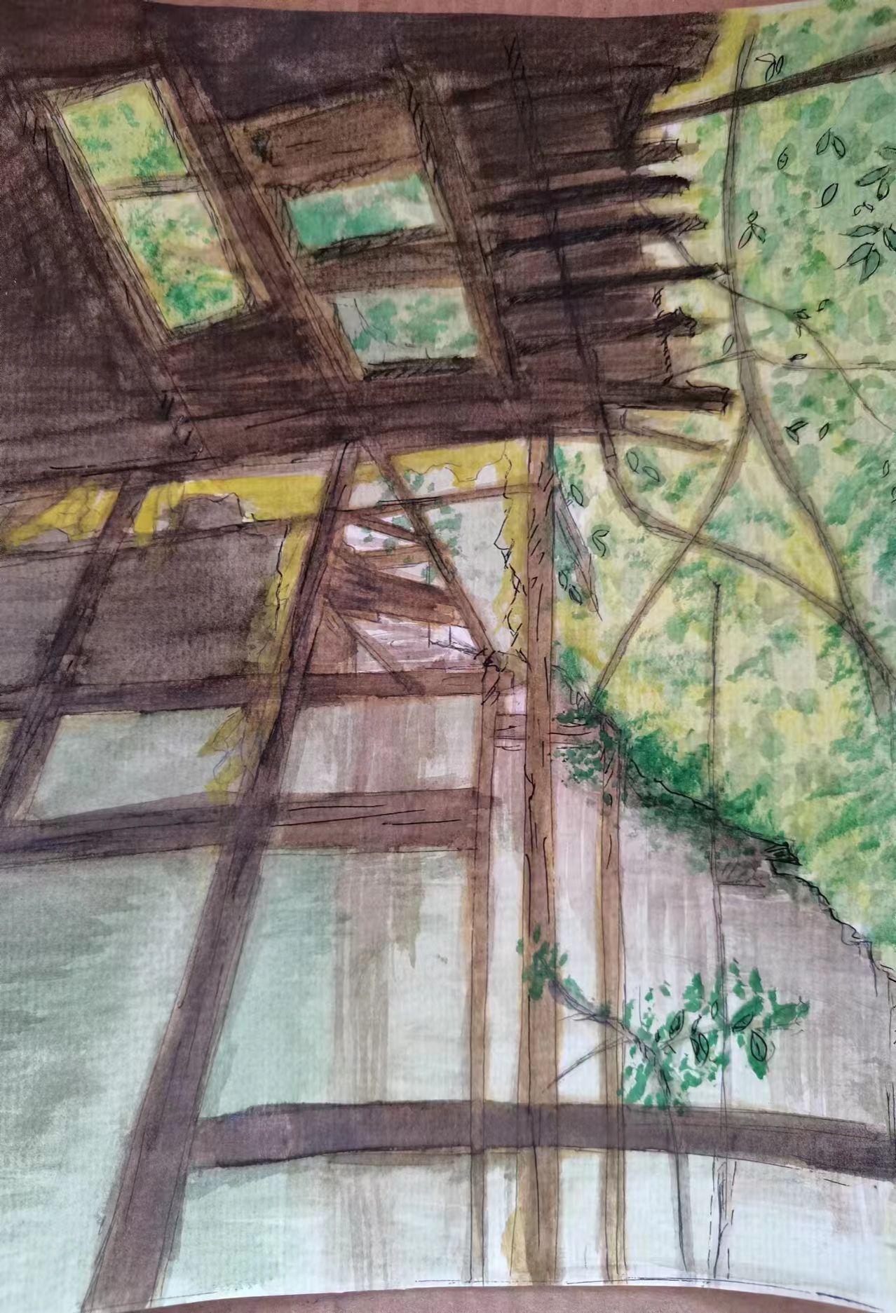 除此之外,团队成员们充分利用丰富的资料,运用专业的技艺,对古建筑之美进行创新创作,对宗祠进行了全方位的艺术再现。速写笔尖流转,勾勒出建筑轮廓的刚劲与柔美;水彩颜料在纸上绽放,渲染出宗祠历史的厚重与色彩;板绘线条细腻入微,捕捉了雕刻艺术的精致与繁复,展现出对传统工艺的敬畏与传承。这些艺术创作不仅赋予了宗祠新的生命,也为后续的保护与修复工作提供了宝贵的视觉资料。