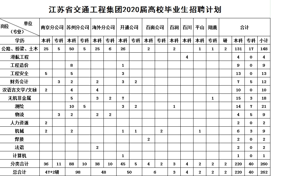 江苏省交通工程集团有限公司 2020年招聘计划