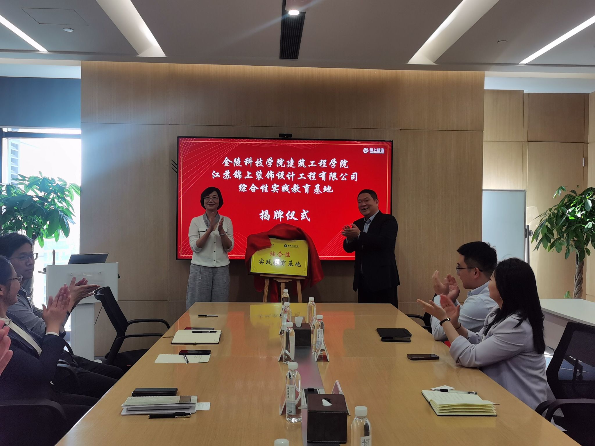 与江苏锦上装饰设计工程有限公司综合性实践教育基地揭牌。