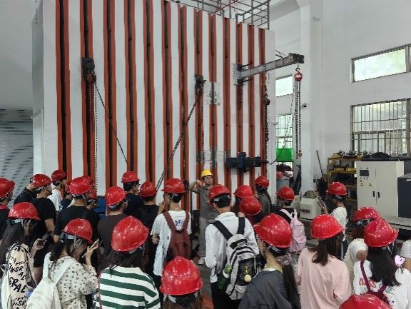 教师团队的热情引领下,京江学院的学生们依次参观了学院的室内实验室、智慧教室、研究生工作室和结构试验大厅。室内实验室的先进设施让学生们对建筑工程的实验流程和科研方法有了更为深刻的认识;智慧教室内,高科技教学设备展示了未来教育的无限可能;研究生工作室的环境使学生们对研究生阶段的学习与科研生活有了更为直观的体验;结构试验大厅中的科研设备更是激发了学生们对科究的浓厚兴趣。