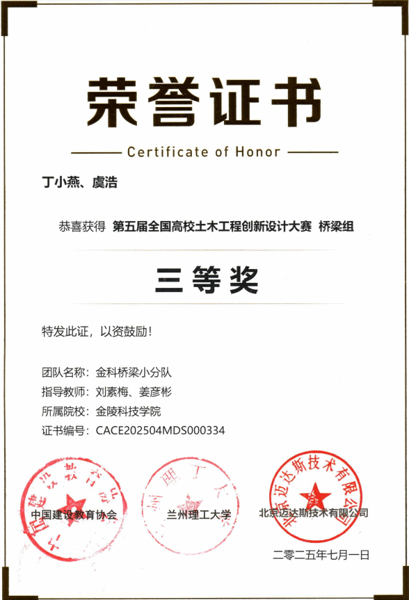 2025年6月10日~12日,第五届全国高校土木工程创新设计大赛总决赛成功举办。全国高校土木工程创新设计大赛由中国建设教育协会主办,旨在引导高等学校培养具有创新意识的优秀土木人才,鼓励土木学子积极创新、相互协作,运用信息技术解决实际问题,提高专业水准与综合素质。